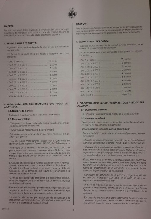AJUDES PER AL MENJADOR ESCOLAR CURS 2016/2017